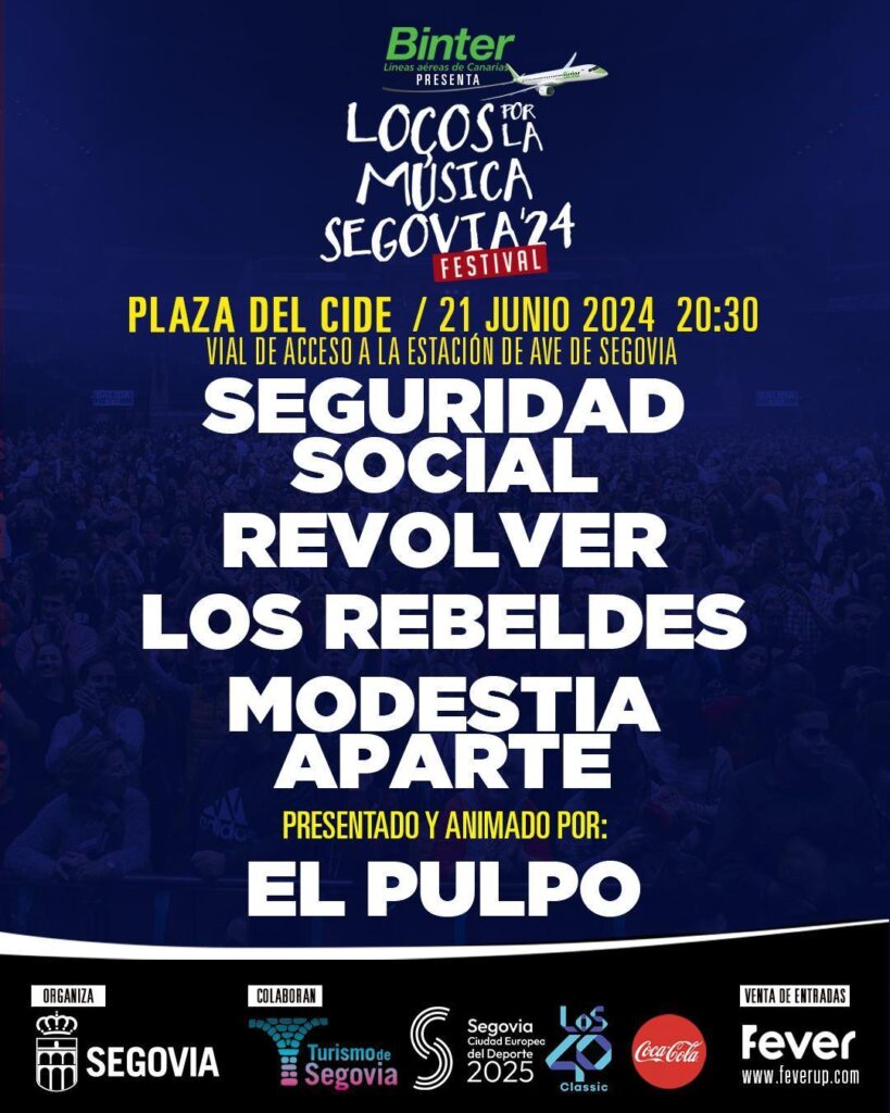 Las Ferias y Fiestas de este año incluyen dos conciertos de pago que se celebrarán en la plaza del CIDE, el Centro de Innovación y Desarrollo económico. El primero de ellos, “Locos por la música”, tendrá lugar el 21 de junio, a las 20.30 horas y reunirá sobre el escenario a grupos de los que algunas canciones son verdaderos himnos para varias generaciones. Revólver, Los Rebeldes, Seguridad Social y Modestia Aparte conforman el cartel de este concierto que estará presentado por el periodista radiofónico Carlos Moreno Arribas, “El Pulpo”, quien dirige el programa Poniendo las calles de la cadena COPE.