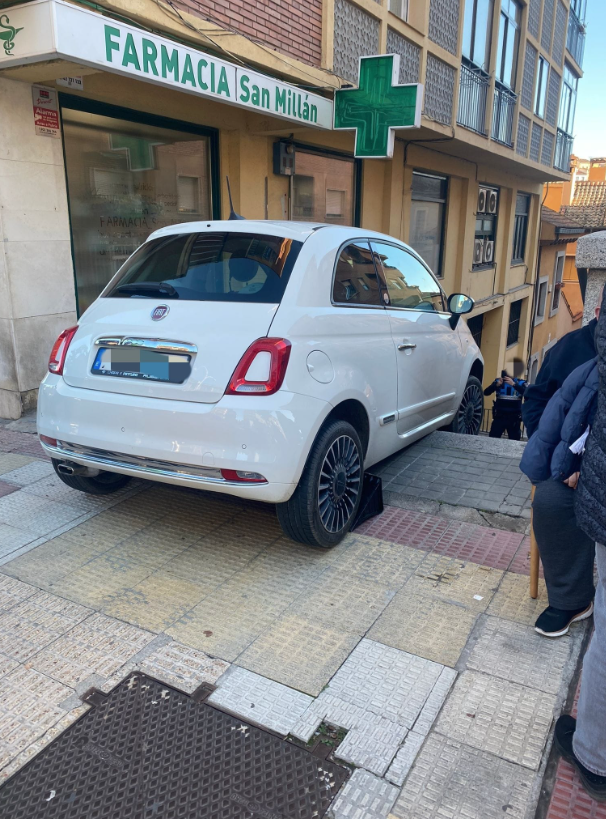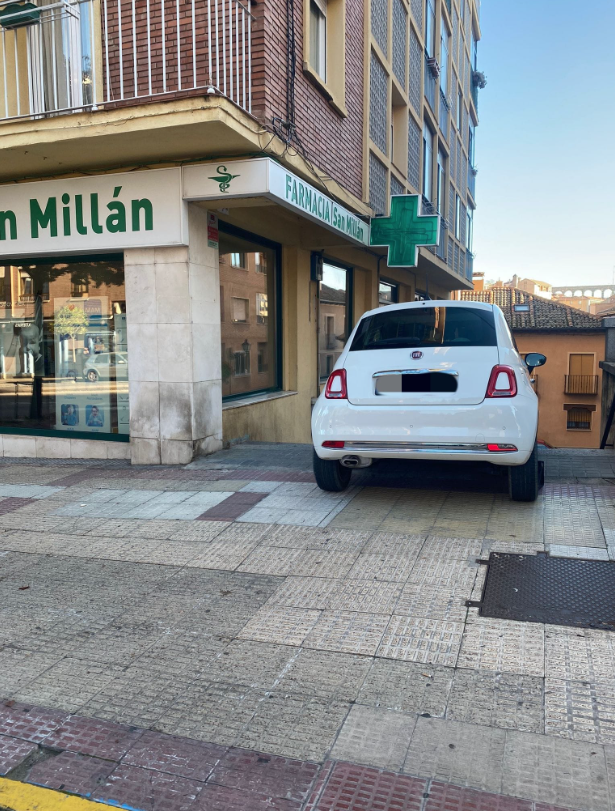 Esto es lo que pasa si quieres entrar a un parking de Segovia por las escaleras… con el coche. O, si simplemente, te confundes o ni siquiera das cuenta de que ese acceso no es para vehículos.