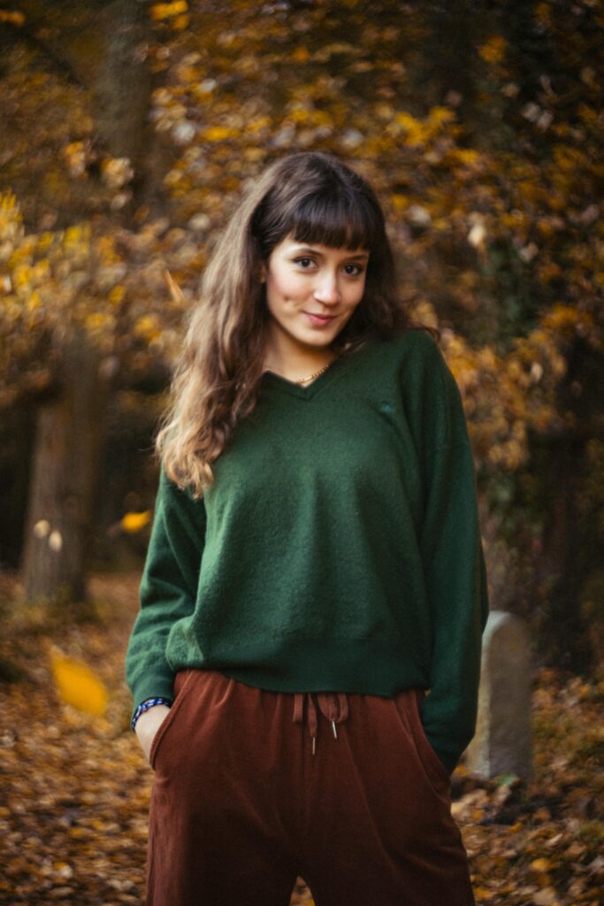 R: Pues pensaba que me decías que si me veía cantando con gente, y la respuesta es que claro que sí. Yo he cantado mucho en grupo, me encanta cantar en grupo. Creo que el oído, cuando cantas, es como que capta más de lo que captaría con una persona, se diversifica. Me gusta mucho ese dinamismo, pero no me veo, por ejemplo, teniendo una banda o siendo la vocalista de una banda. Ahora mismo estoy full focus en mi proyecto personal y en desarrollarme yo como artista.