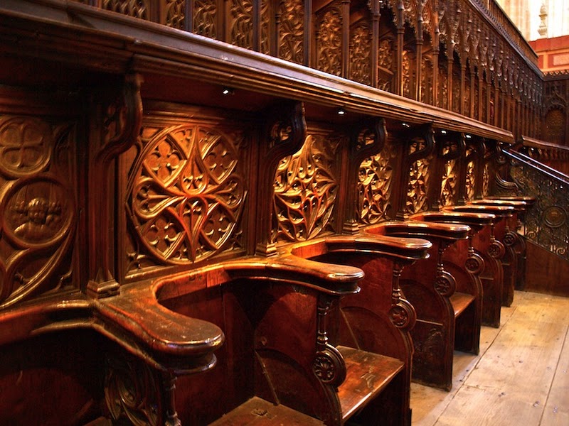 Si giramos 180º nuestras cabezas y dirigimos la vista al frente, vamos a toparnos de lleno con otra de las partes más importantes de la Catedral de Segovia a la que llegaremos por la Via Sacra. Recorremos un pasillo repleto de lápidas de ilustres segovianos que pagaban por estar cerca de Dios hasta llegar a un Coro de una belleza y originalidad extremas.