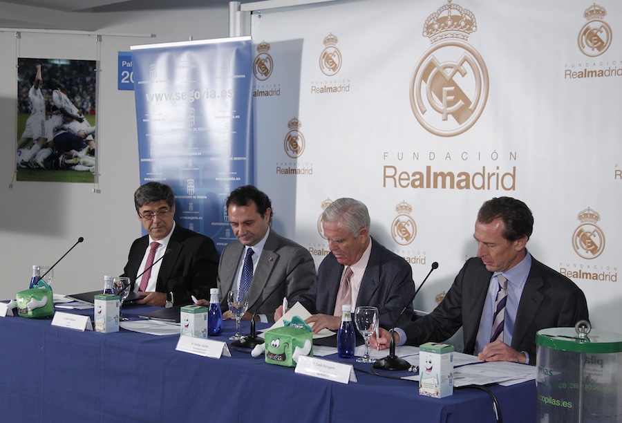 Casi un centenar de niños y niñas de entre 5 y 17 años, la mitad de ellos inmigrantes, serán los primeros beneficiarios de un proyecto que ha sido rubricado en el Santiago Bernabéu bajo la presencia de Emilio Butragueño, director de Relaciones Institucionales del Real Madrid C. F., Enrique Sánchez, vicepresidente ejecutivo de la Fundación Realmadrid, Pedro Arahuetes, alcalde de Segovia, y José Pérez, presidente de la Fundación Ecopilas. Butragueño afirmó que es una enorme satisfacción para la Fundación Realmadrid la creación de escuelas de este tipo que “no sólo se busca el desarrollo y la formación en valores a través de la integración social, sino también en el respeto al Medio Ambiente.