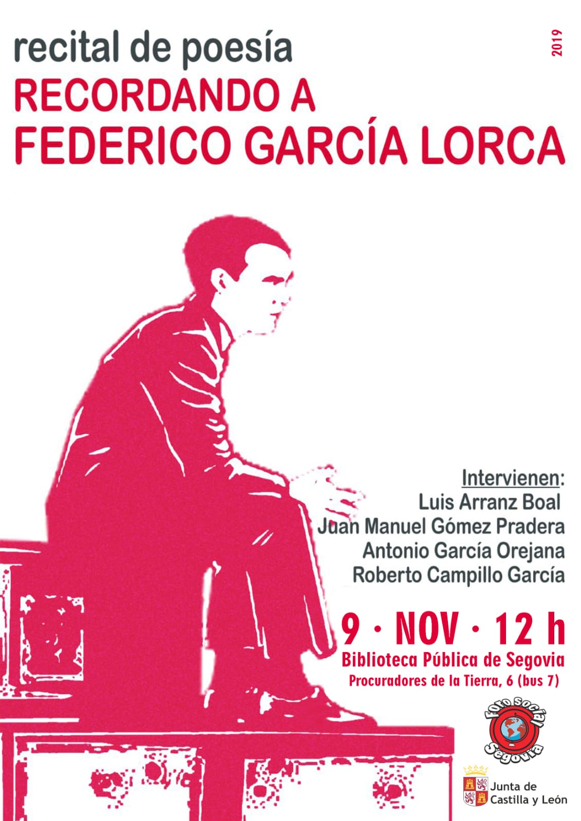 El día 9 de noviembre a las 12 h., en la Biblioteca Pública de Segovia, (Procuradores de la Tierra,6) el Foro Social de Segovia organiza el recital de poesía: RECORDANDO A FEDERICO GARCÍA LORCA.