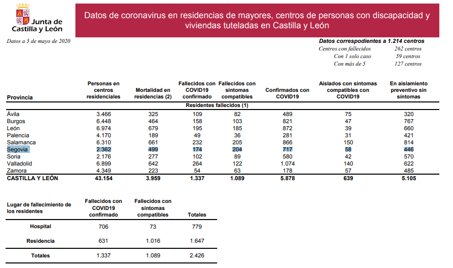 La Junta ha reconocido que el número de fallecidos no es posible darlo con exactitud ya que algunos residentes (sin especificar por las autoridades) fallecen en el Hospital. La realidad es que el número de residentes que ha fallecido diagnosticados como positivos asciende a 369. La buena noticia es que no hay ningún fallecido diagnosticado en las últimas 24 horas.