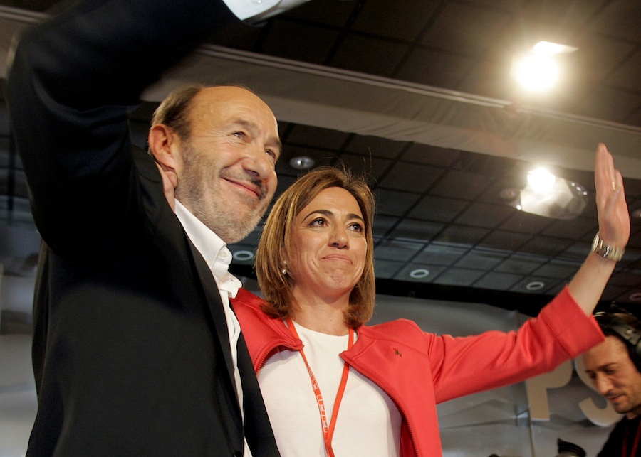 El siguiente abrazo de Rubalcaba, ante la mesa del Congreso, los delegados y los medios de comunicación, con Carme Chacón, que escuchó después la breve intervención del nuevo secretario general emocionada, con los ojos rojos y llorosos, pero aplaudiendo junto a los demás.