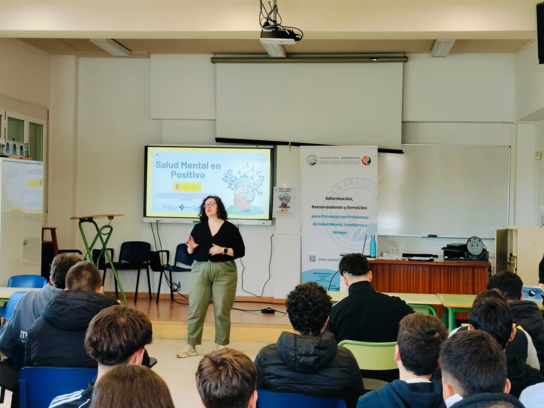 El primero de los talleres se ha llevado a cabo este lunes día 18. Irene San Miguel, psicóloga de AMANECER, estuvo en el IES María Zambrano de El Espinar.