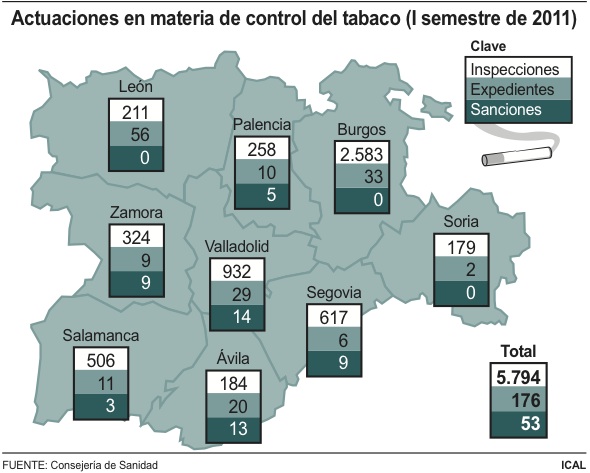 Fuentes de la Consejería de Sanidad destacaron en una nota de prensa recogida por Ical que las actuaciones en materia de control del tabaco han mantenido durante el primer semestre de 2011 la labor inspectora que