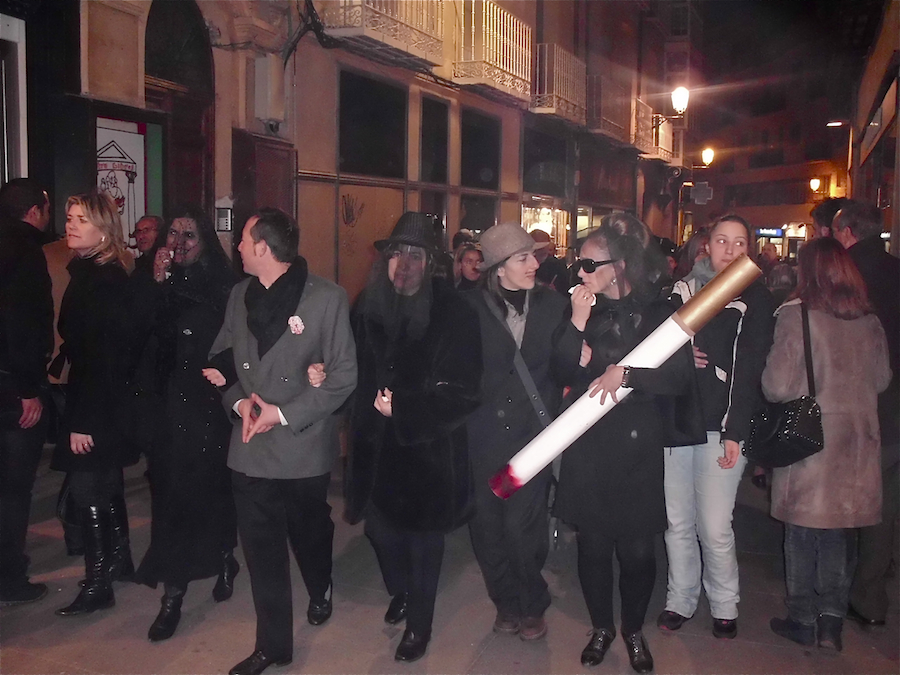 La sátira, la inversión y la exageración de los roles humanos volvieron a aflorar una vez más en la representación de la victoria de Don Carnal sobre Doña Cuaresma a través de un cortejo fúnebre en los que no faltaron, un año más, la figura del obispo (obispa en este caso), el sacerdote, el monaguillo, y los cuerpos de seguridad representados por la Guardia Civil, todos ellos, ciudadanos segovianos disfrazados y caracterizados para la ocasión. Los acompañaban las desoladas viudas plañideras que grito en el cielo y entre el humo del incienso, se quejaban de la marcha a mejor vida de «Doña sardina».
