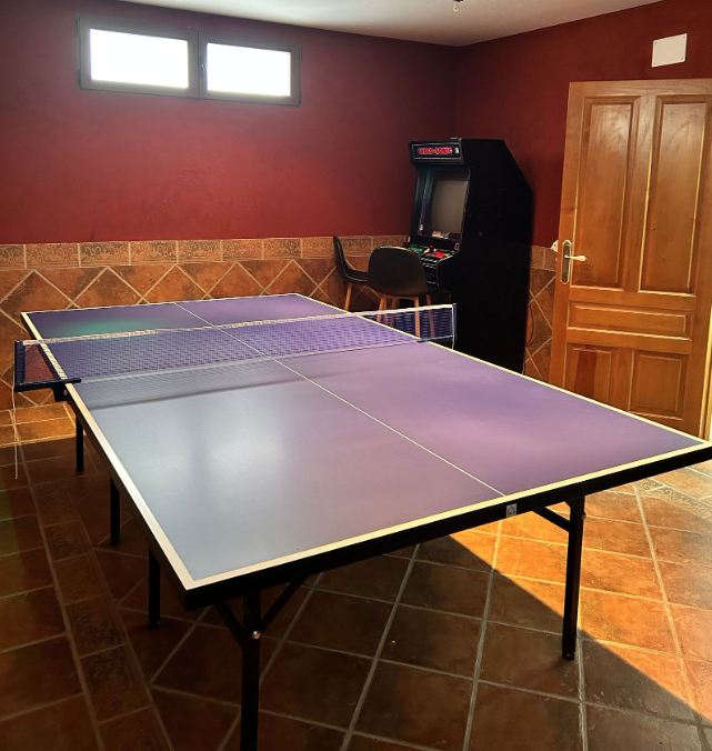 Completa las instalaciones un espacio multiusos, a modo de bodega, con máquinas de videojuegos, mesa para comer, sillones y chimenea.