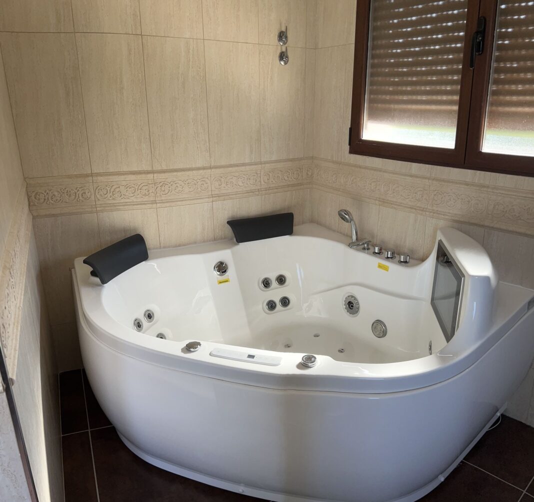 Cuenta con cuatro dormitorios completos, con ducha, bañera de hidromasaje y jacuzzi.