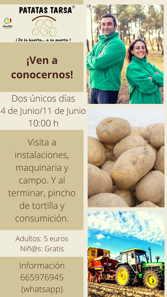 Patatas Tarsa organiza dos jornadas, para las que es necesaria inscripción previa a través de un formulario, para que los consumidores puedan conocer, de primera mano, el itinerario de la patata, desde el campo hasta la mesa.