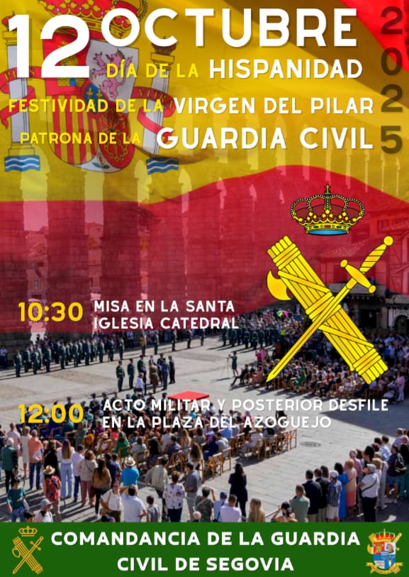 Dará comienzo a las 12:00 horas e incluirá los discursos de la subdelegada del Gobierno, Marian Rueda; y el teniente coronel jefe de la Comandancia de Segovia, Benito Donate. Asimismo, se hará la entrega de distinciones.