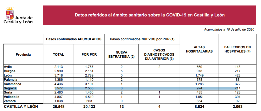 Segovia no lamenta hoy ningún contagio ni ningún fallecido en la provincia en las últimas 24 horas.