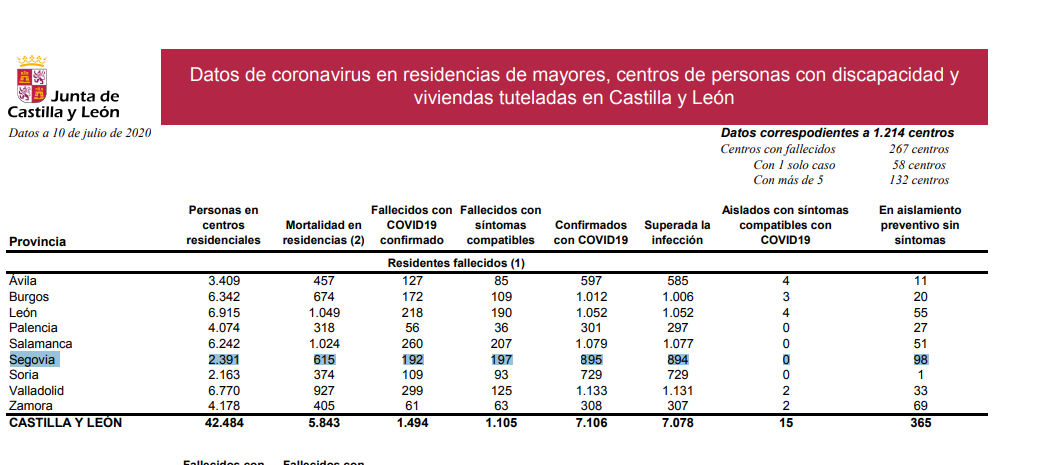 La Junta de Castilla y León reconoció al inicio de la pandemia que el número de fallecidos no es posible darlo con exactitud. Hasta el momento, la cifra de fallecidos facilitada por las autoridades es de 403.