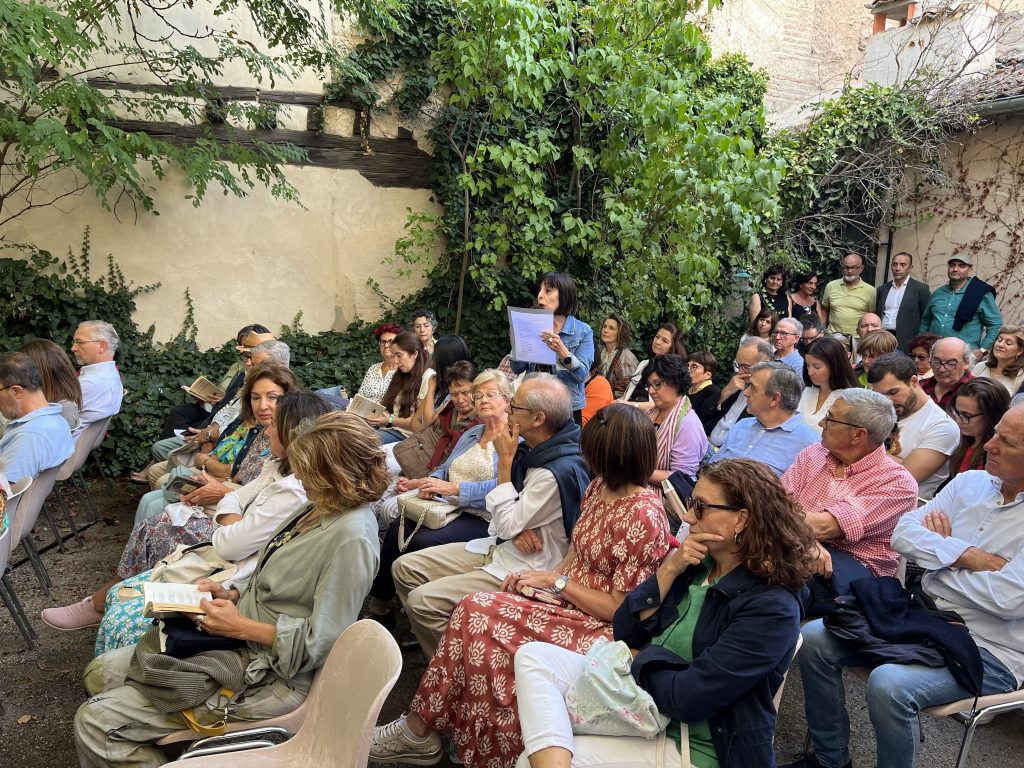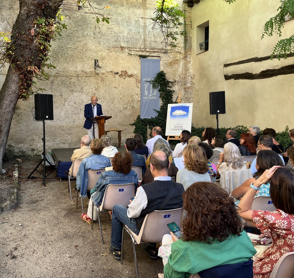 La lectura del poemario fue una tarde mágica que quedará para la historia cultural de la ciudad. Convocadas por la Real Academia de Historia y Arte de San Quirce, casi 80 personas intervinieron en el recitado continuo, en un lugar tan especial como el patio del castaño de la Casa-Museo de Antonio Machado en Segovia.
