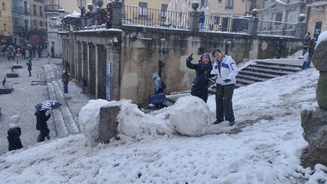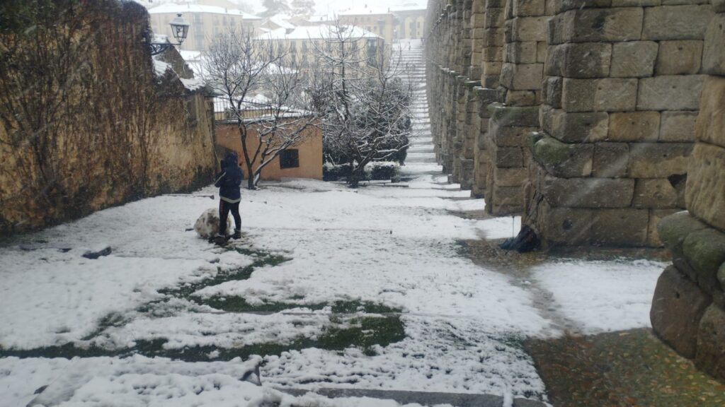 Más allá de los grandes monumentos, la nevada también ha dejado escenas llenas de vida cotidiana. Muñecos de nieve improvisados en plazas y calles; niños jugando en espacios abiertos; y familias paseando despacio forman parte de una jornada distinta, marcada por el frío también por las guerras de bolas entre amigos y familias.