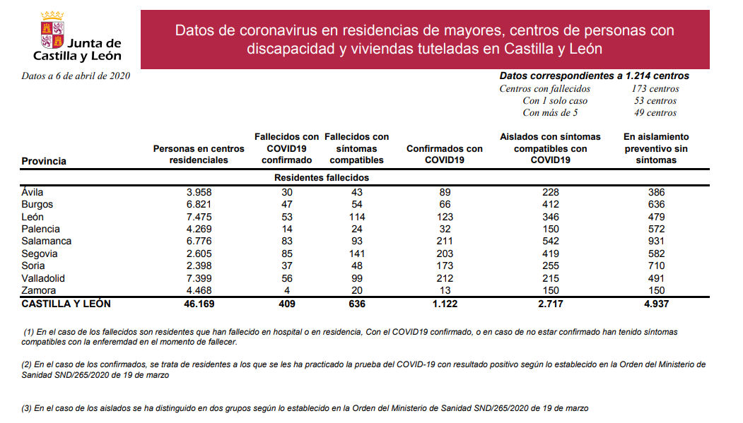 La situación recogida provincialmente puede consultarse en el archivo adjunto y de forma más amplia a través de este Enlace a la información actualizada sobre el nuevo coronavirus COVID-19 en Castilla y León en donde también están accesibles estadísticas sobre profesionales sanitarios afectados por la epidemia.
