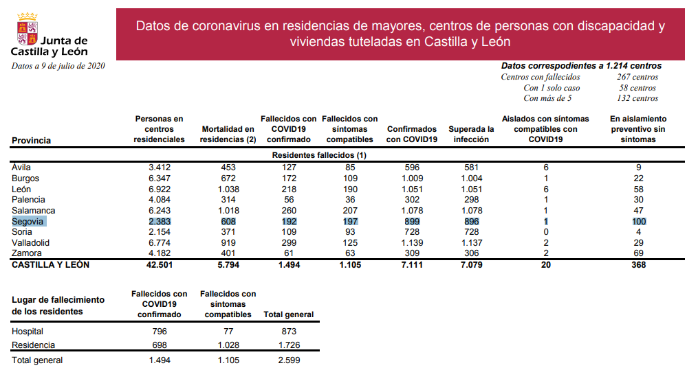La Junta de Castilla y León reconoció al inicio de la pandemia que el número de fallecidos no es posible darlo con exactitud. Hasta el momento, la cifra de fallecidos facilitada por las autoridades es de 403.