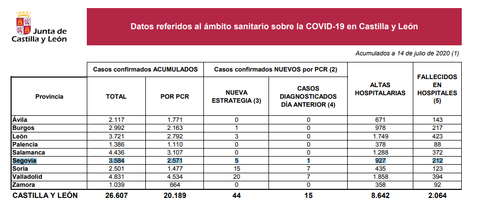 La situación recogida provincialmente puede consultarse en el archivo adjunto y de forma más amplia a través de este enlace al Portal de Transparencia de la Administración castellana y leonesa ( Enlace a la información actualizada sobre el nuevo coronavirus COVID-19 en Castilla y León )