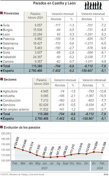 Segovia registra el mayor descenso del paro en Castilla y León en términos absolutos en la estadística de febrero de 2024.