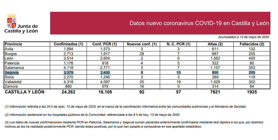 En cifras totales, Segovia ha confirmado 3.379 pacientes contagiados. Nuestra ciudad ya no está lejos de la primera provincia con más contagios de Castilla y León: Valladolid con 4.318. En segundo lugar está Salamanca con 4.118, León en tercer lugar con 3.514 y Segovia en cuarto lugar. En último lugar, muy alejado de estas cifras se encuentran Zamora con 880 casos y Palencia con 1.176.