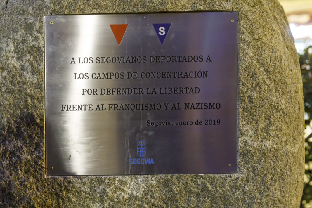 En ese acto se recordó que la gran mayoría de los españoles deportados eran exiliados que habían abandonado España en 1939 y que contribuyeron a la defensa de Francia contra la Alemania nazi. De ellos, 31 eran segovianos y pasaron por los campos de Buchenwald, Mauthausen, Neuengamme o Dachau. En la placa, colocada de nuevo en la parte central del monolito de piedra, se puede leer: “A los segovianos deportados a los campos de concentración por defender la libertad frente al franquismo y al nazismo”