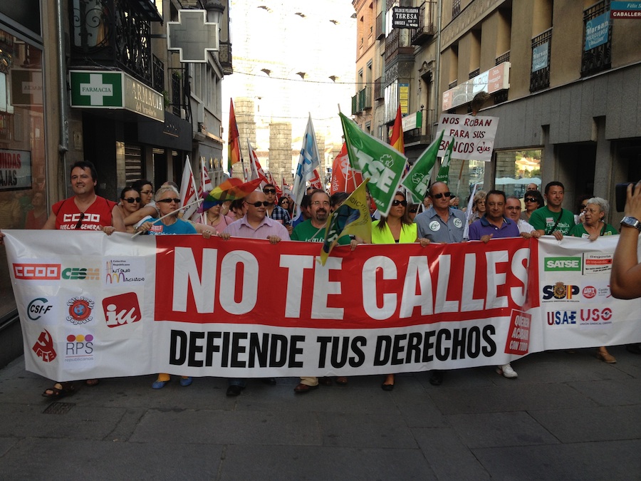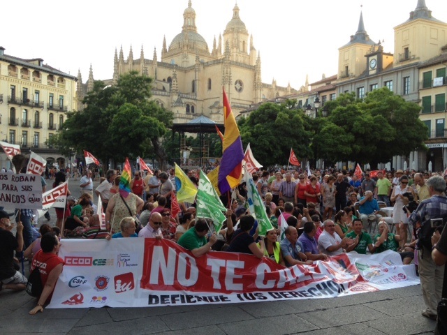 Alrededor de 11.000 ciudadanos, según sindicatos, y 5000 según fuentes de la Subdelegación del Gobierno de Segovia, han salido hoy a la calle para protestar por los “brutales” recortes del Gobierno de Mariano Rajoy. Bajo el lema “No te calles. Defiende tus derechos”, la concentración convocada por los sindicatos, “una de las grandes que se han realizado en Segovia”, protestó por las medidas “injustas” tomadas por el Ejecutivo, como señaló el secretario general de CCOO, Ignacio Velasco. En la misma linea, el secretario de CSI-F, José Isern, lamentó los recortes y advirtió que las manifestaciones continuarán si el Gobierno no negocia “porque esto no es una dictadura, es una democracia” y criticó que el presidente del Gobierno, haya ganado unas elecciones con un programa electoral “que no está cumpliendo”.