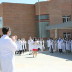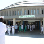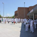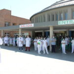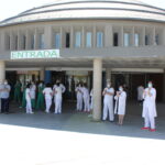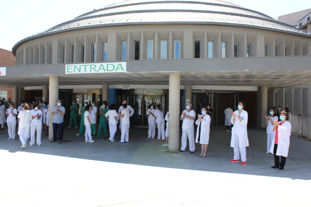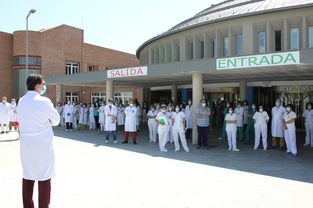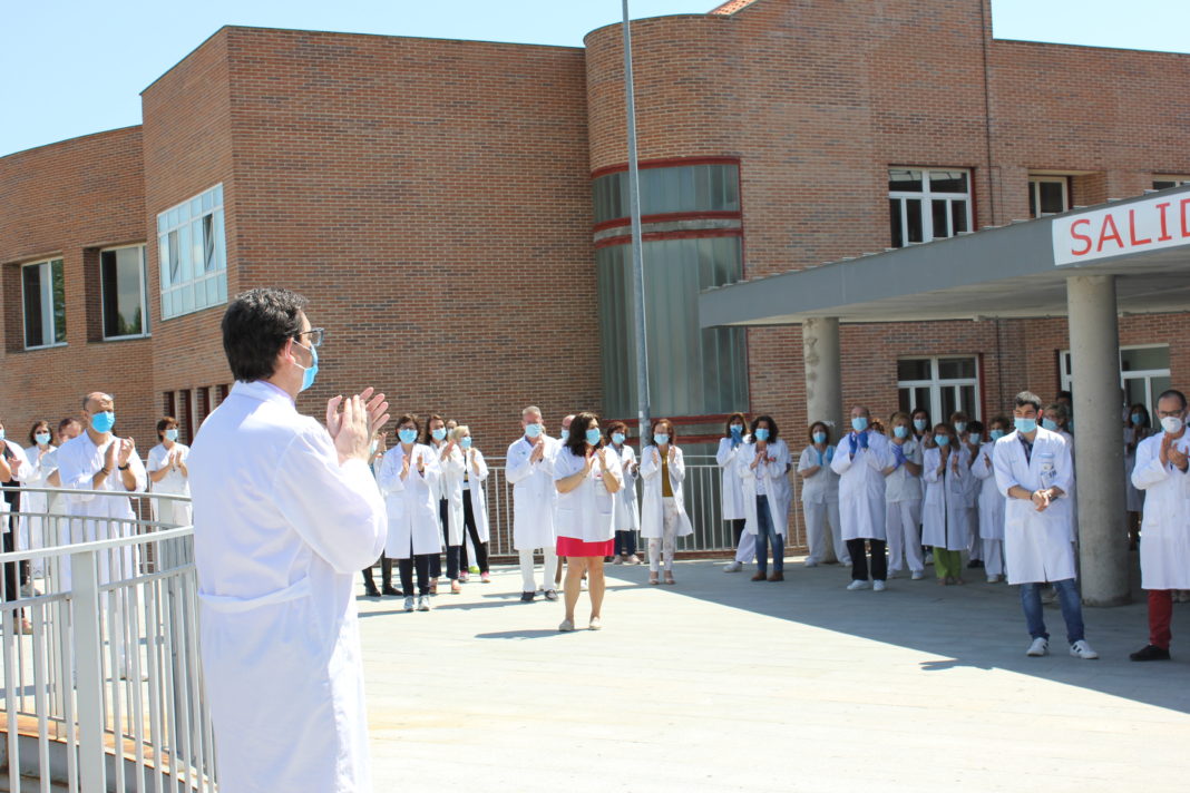 Los trabajadores del Hospital también han participado en el homenaje desde la puerta de las urgencias.