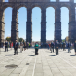 La alcaldesa de Segovia, Clara Luquero, junto a miembros de la corporación municipal, ha asistido al minuto de silencio en el que han participado todas las autoridades locales (civiles y militares), además de los ciudadanos que se han querido sumar a esta convocatoria en el Azoguejo. Unidos han dedicado un momento solemne, sincero y de respeto a la memoria de todas las personas fallecidas por la pandemia.