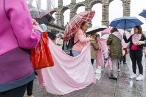 La Asociación Española Contra el Cáncer (AECC) en Segovia lanzó, en la mañana del 19 de octubre, con motivo de la celebración del Día Mundial del Cáncer de Mama, una campaña de sensibilización con una cadena humana en el centro de la ciudad.