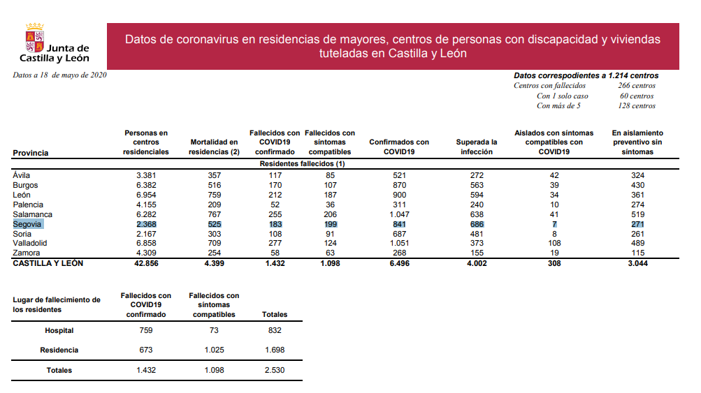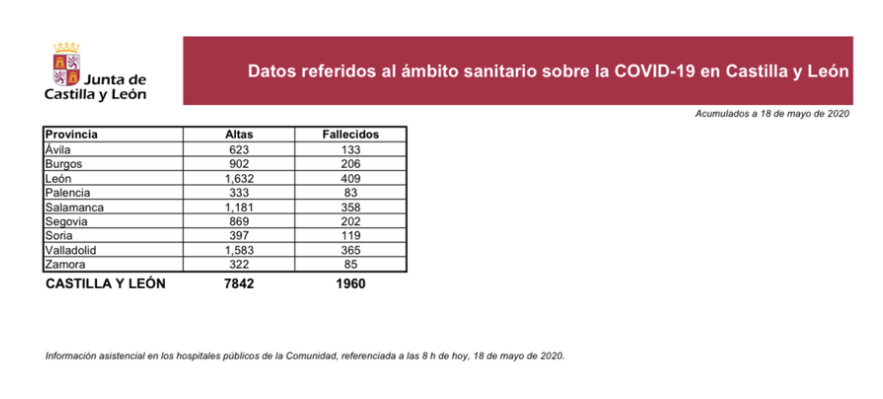 De momento, la Junta sólo ha dado a conocer la cifra de altas y fallecidos de hospitales y los datos epidemológicos de las residencias de la comunidad.