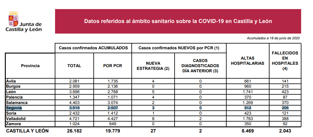 LOS POSITIVOS DE LA COVID-19 SUMAN HOY 26.182 EN CASTILLA Y LEÓN, DE LOS QUE 19.779 CASOS TIENEN CONFIRMACIÓN POR PCR