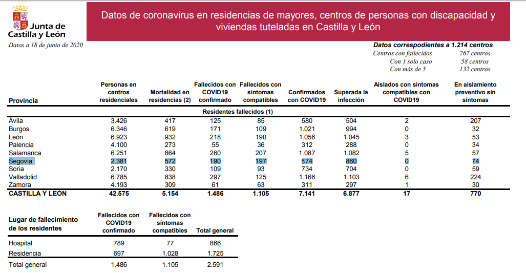 La Junta de Castilla y León reconoció al inicio de la pandemia que el número de fallecidos no es posible darlo con exactitud. Hasta el momento, la cifra de fallecidos facilitada por las autoridades es de 396.