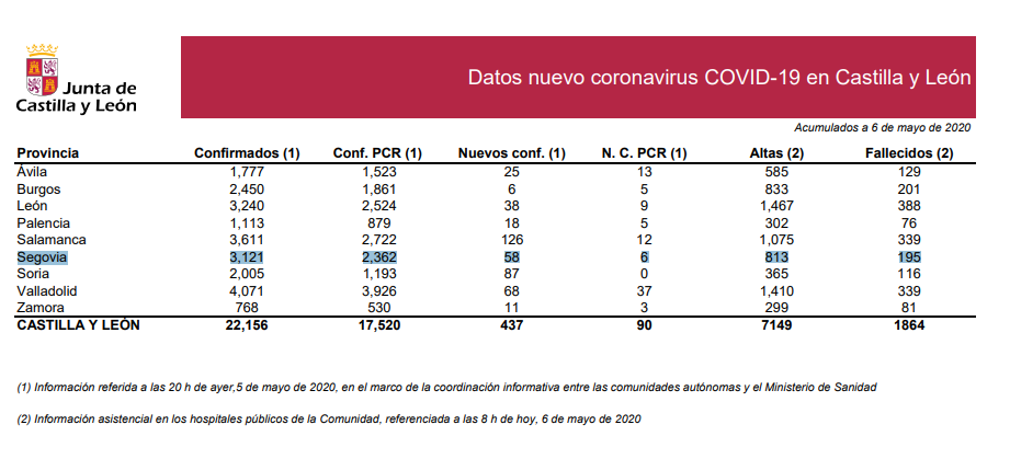 En cifras totales, Segovia ha confirmado 3.121 pacientes contagiados. Nuestra ciudad ya no está lejos de la primera provincia con más contagios de Castilla y León: Valladolid con 4.071. En segundo lugar está Salamanca con 3.611, León en tercer lugar con 3.240 y Segovia en cuarto lugar. En último lugar, muy alejado de estas cifras se encuentran Zamora con 768 casos y Palencia con 1.113.
