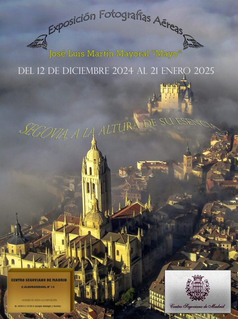 La muestra reúne 16 fotografías aéreas de gran formato (1,20 x 0,70 metros) captadas por el fotógrafo segoviano José Luis Martín Mayoral, conocido como “Mayo”.