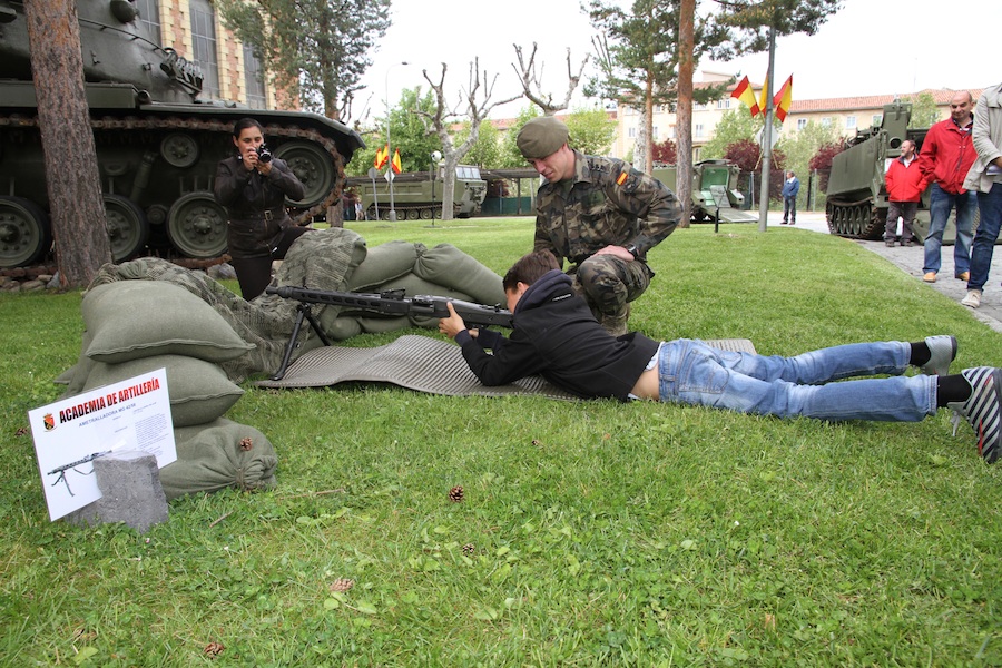 Carros de combate, diferentes tipos de armamentos, tiendas modulares o maletines de investigación de los cuerpos de la Academia de Artillería de Segovia, la Guardia Civil y el Parque y Centro de Mantenimiento de Sistemas Acorazados (PCMASA) nº 2, despertaron hoy la curiosidad de quienes se acercaron por la exposición de armamento y material organizada en las instalaciones militares ubicadas en la Avenida de la Constitución con motivo del Día de las Fuerzas Armadas.
