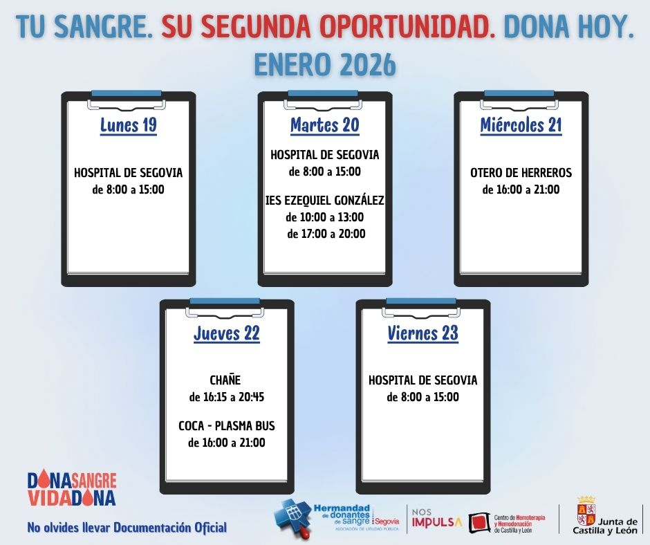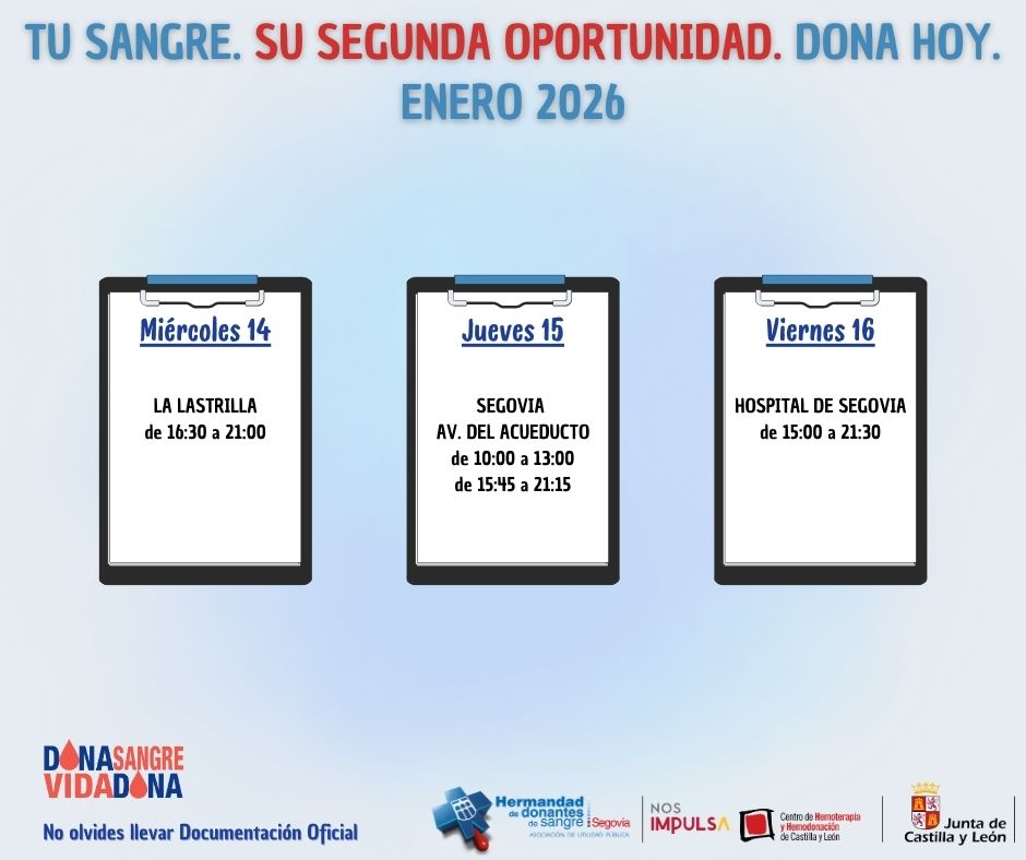 También en la ciudad de Segovia los donantes podrán acudir el 20 de enero a la Biblioteca del IES Ezequiel González de 17:00 a 20:00 horas.