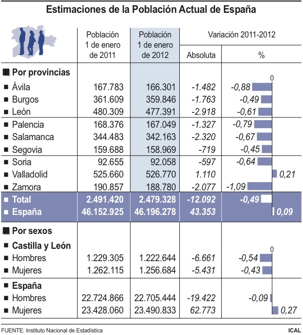 Valladolid fue la única que arrojó un dato positivo, con un incremento de su población del 0,21 por ciento, hasta alcanzar las 526.770 personas, 1.110 más que hace un año.