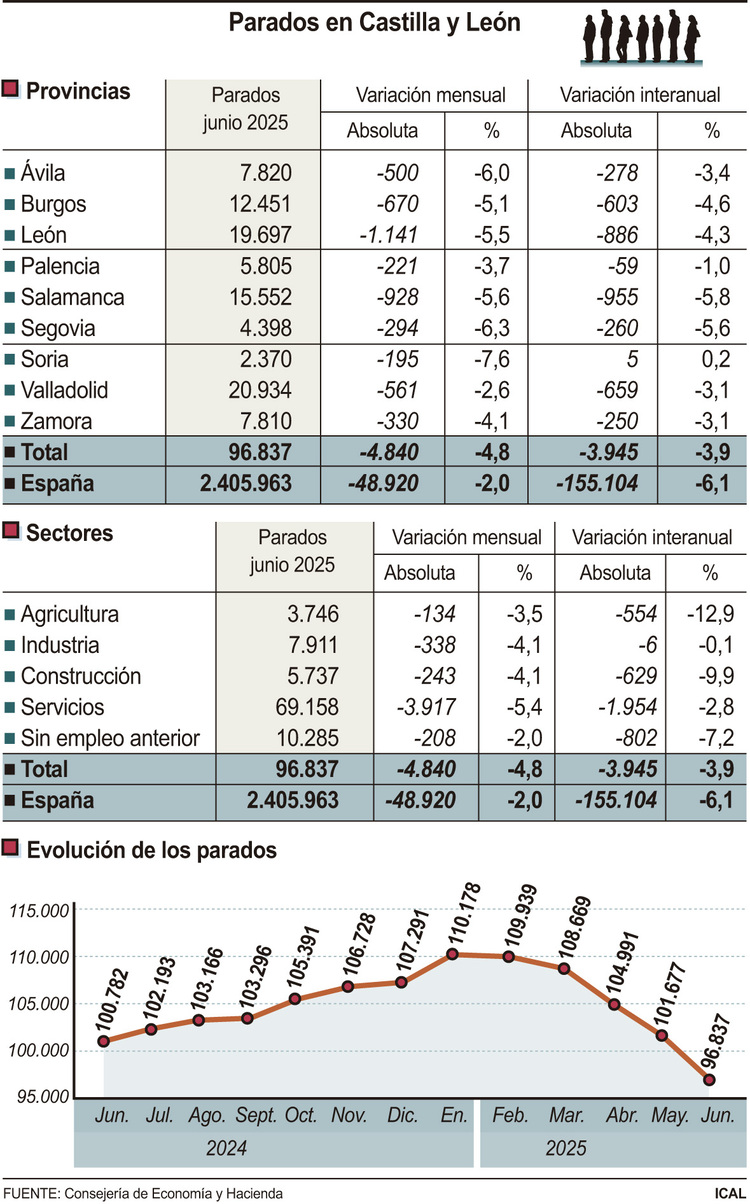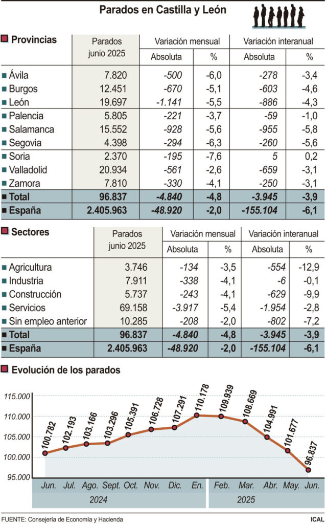 Soria y Segovia lideran el descenso del paro en Castilla y León