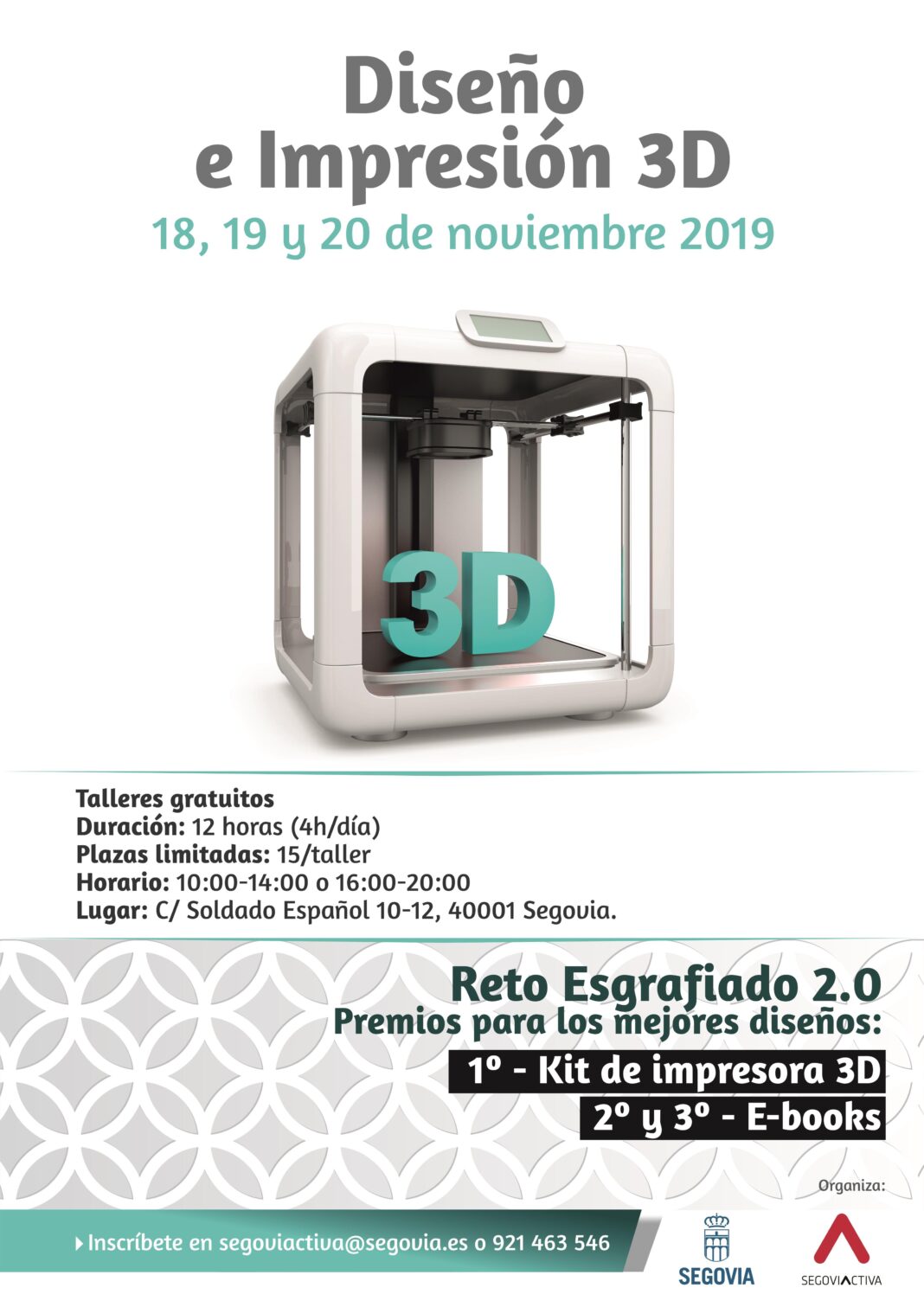 Teniendo en cuenta su importancia y presencia en la economía digital, y el interés que despierta todo ello especialmente entre los jóvenes, la concejalía de Innovación organiza dos talleres de diseño e impresión en 3D los días 18, 19 y 20 de noviembre. Quienes estén interesados tendrán la oportunidad de conocer esta tecnología de aplicación cada vez más cotidiana y/o afianzar sus conocimientos teórico/prácticos tanto en el diseño como en la impresión 3D.
