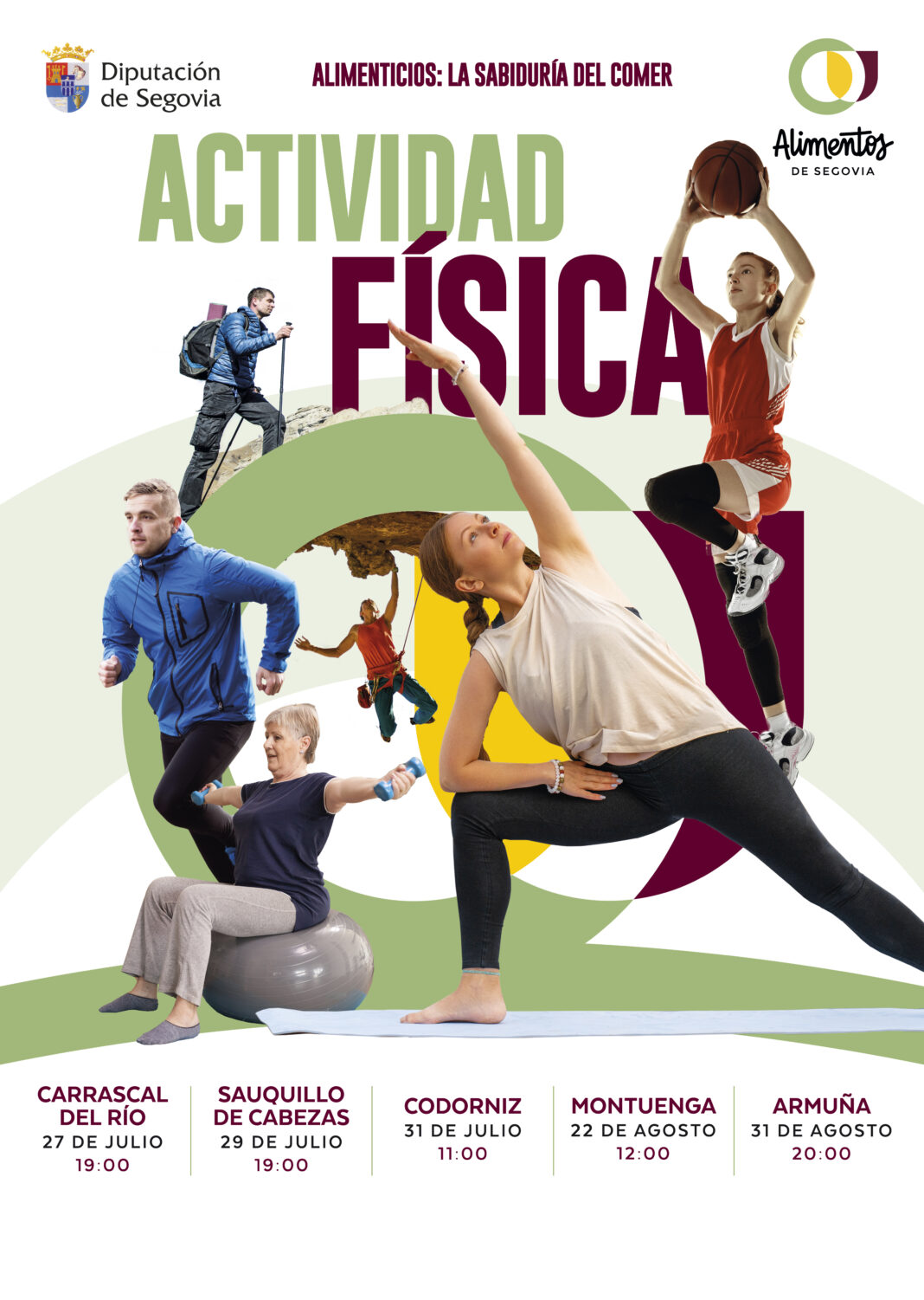 Los talleres sobre alimentación y ejercicio se harán el 27 de julio en Carrascal del Río, el 29 de julio en Sauquillo de Cabezas y el 31 de julio en Codorniz. En agosto tendrán lugar en Montuenga el día 22 y en Armuña el día 31.