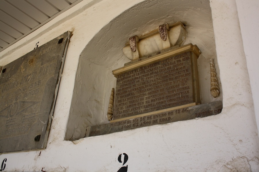 De la época no se conservan tumbas sobre tierra, pero si existen nichos; una solución vertical a la falta de espacio, tumbas, y mausoléos. Comenzamos con un recorrido que para muchos puede resultar tétrico, pero que en realidad, y mirado desde otro lado, es la exaltación de la persona al final de su vida, una radiografía de aquello que quedan ansias de decir cuando una persona nos ha dejado. Se desnuda el alma, se expresan sentimientos que son muy puros. La crónica de una determinada época se puede estudiar desde la vida, pero también desde la muerte.