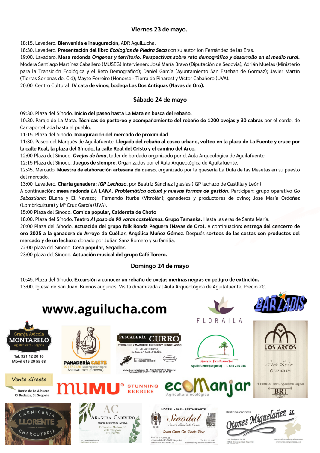 Tampoco faltarán en Aguilafuente los talleres, charlas y juegos para los más pequeños a lo largo de toda la celebración.
