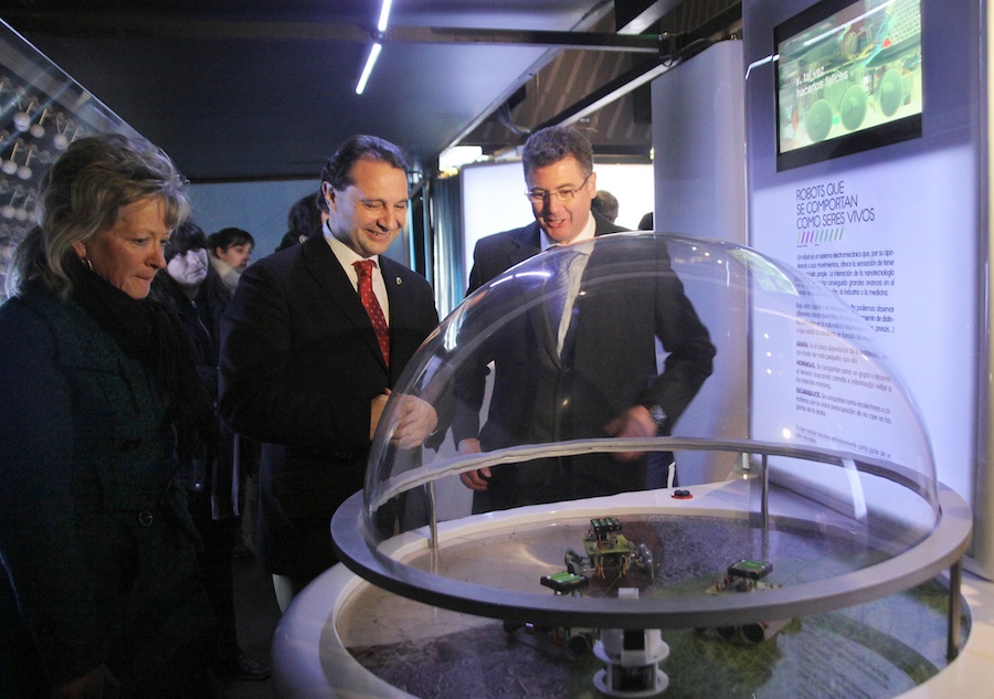 La Obra Social “la Caixa” y el Ayuntamiento de Segovia han presentado la exposición itinerante ExpoCaixa Tecnorrevolución que trata de mostrar, de una manera interactiva, las aplicaciones de las nuevas tecnologías y ciencias convergentes en la vida cotidiana. El alcalde de la capital, Pedro Arahuetes y el director de área de negocio de la entidad en Segovia y Ávila, Reyes Agudo, visitaron una muestra que pretende “revertir a la sociedad la confianza que depositan nuestros clientes”, explicó Agudo.