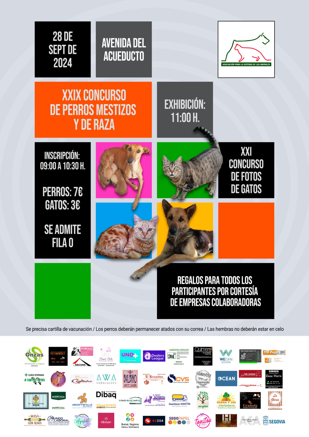 Este sábado 28 de septiembre, en la Avenida del Acueducto, se celebrará la edición número 29 del Concurso de Perros Mestizos y de Raza. Paralelamente, se llevará a cabo el XXI Concurso de Fotos de Gatos, para premiar la mejor instantánea sobre felinos que presenten los participantes.
