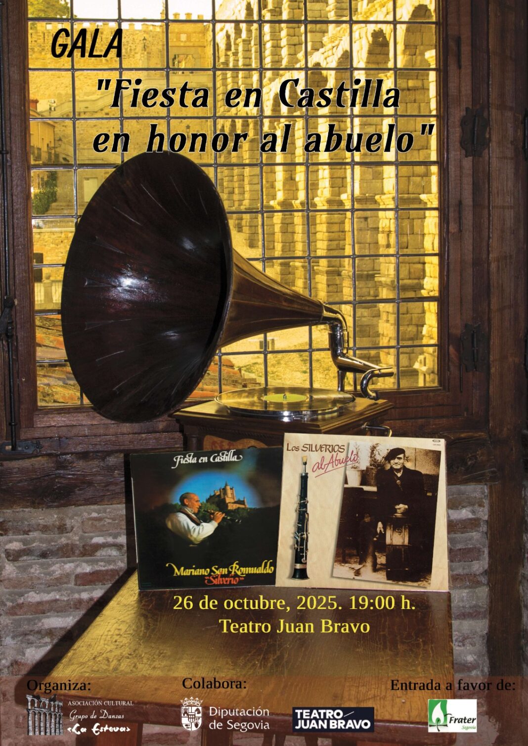 El Teatro Juan Bravo acogerá ese mismo día la gala solidaria de La Esteva, denominado ‘Fiesta en Castilla en honor al abuelo’. Está programada para las 19:00 horas, a beneficio de Frater Segovia.