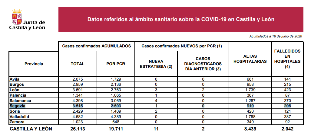 Además, en total, son ya 3.515 las personas diagnosticadas en Segovia. Con un contagio en las últimas 24 horas.