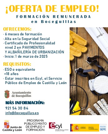 Boceguillas acoge un nuevo programa formativo. El municipio segoviano oferta 8 plazas remuneradas para la obtención de Certificado de Profesionalidad nivel 2 en Pavimentos y Albañilería de urbanización.