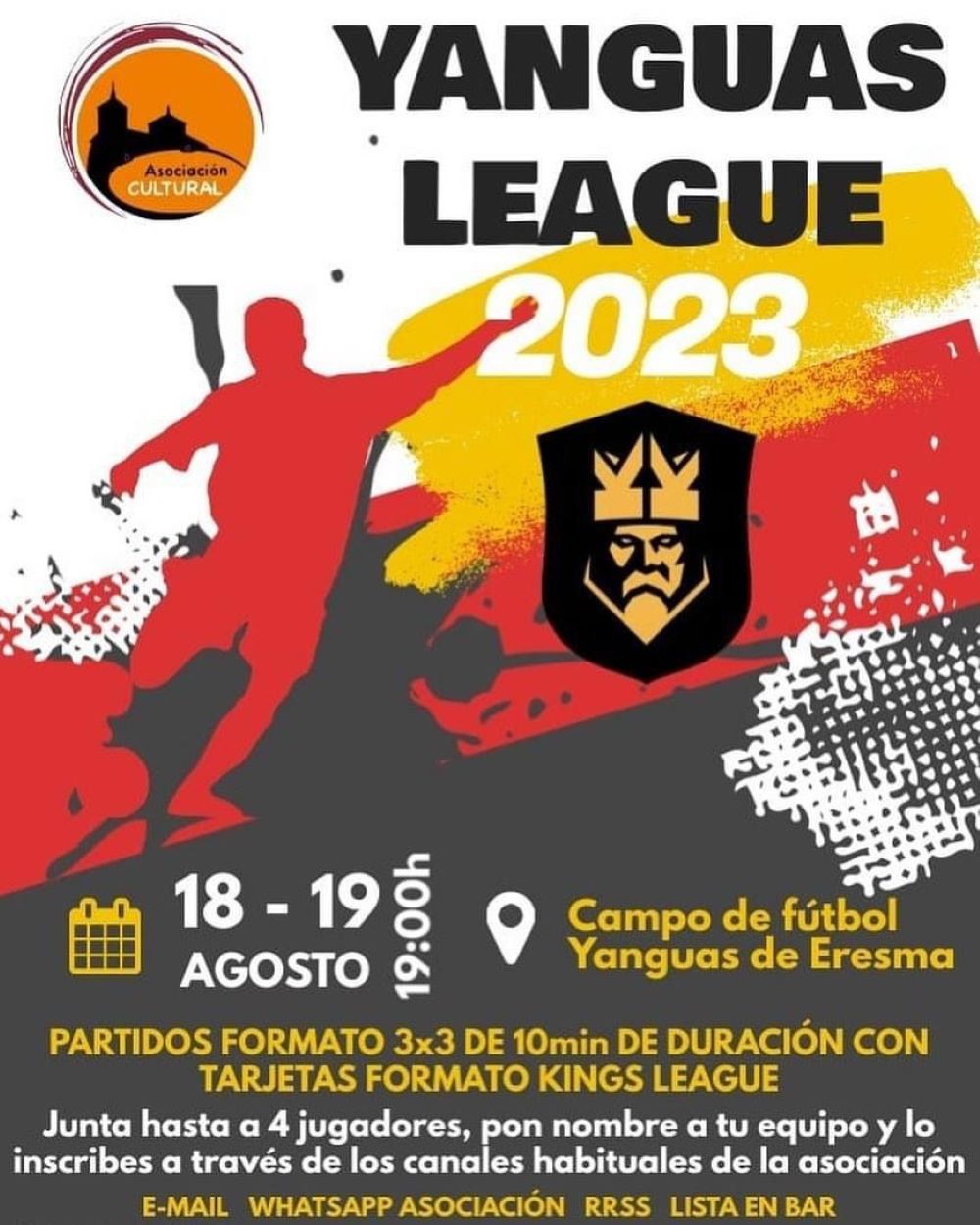 Los días 18 y 19 de agosto desde las 19 horas en el campo de fútbol del pueblo se desarrollará esta prueba donde los partidos serán tres conta tres y 10 minutos de duración. También habrá tarjetas al estilo de la Kings League como expulsión de dos minutos, penalti presidente o dos contra uno. Para jugar en este torneo, debe haber un mínimo de cuatro jugadores por equipo y la inscripción se hace a través de email, número de WhatsApp de la Asociación, redes sociales o en el bar.