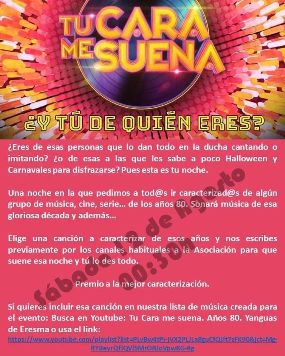 Este programa que esta en emisión en Antena 3, consiste en que distintos artistas deben imitar e interpretar a otros artistas famosos, intentando hacer la misma voz, movimientos, bailes y trajes. Por ello, en Yanguas quieren hacer una cosa similar y han pedido a los vecinos que se vistan de su grupo preferido de música, personaje de una película o de una serie de los años 80. Habrá una persona que ponga música de esa década para que las caracterizaciones sean más realistas.