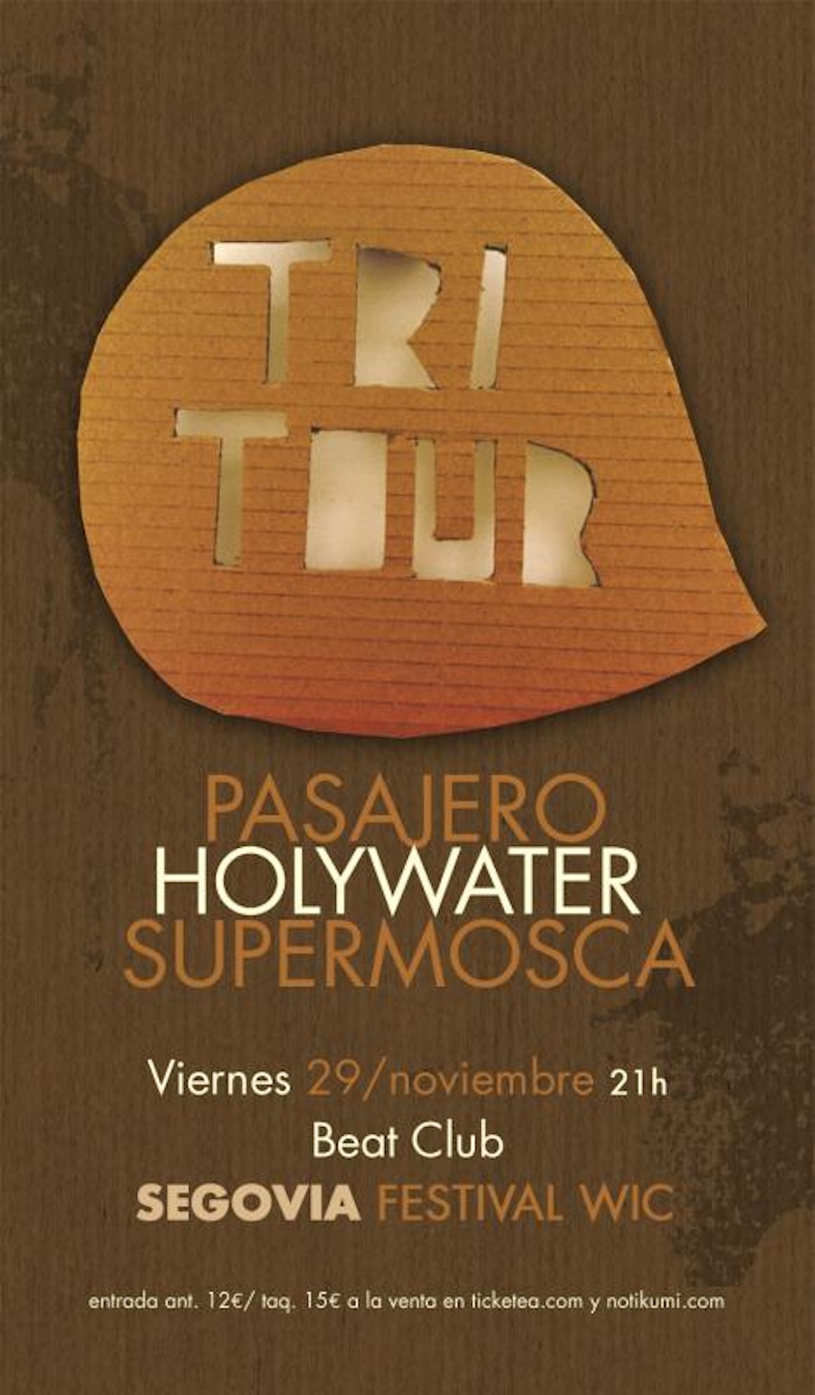 Tras ofrecer los conciertos de Bigott, Julio de la Rosa, Niño y Pistola, Idealipstick & Cheap Time y el pequeño festival de cuatro grupos del pasado día 16, llega a una de las salas que más apuesta por lo menos comercial, Beat Club, el concierto de Pasajero, Holywater y Supermosca, tres bandas que destacan por su potente directo, unen fuerzas en una gira única que las llevará a varias ciudades este otoño.